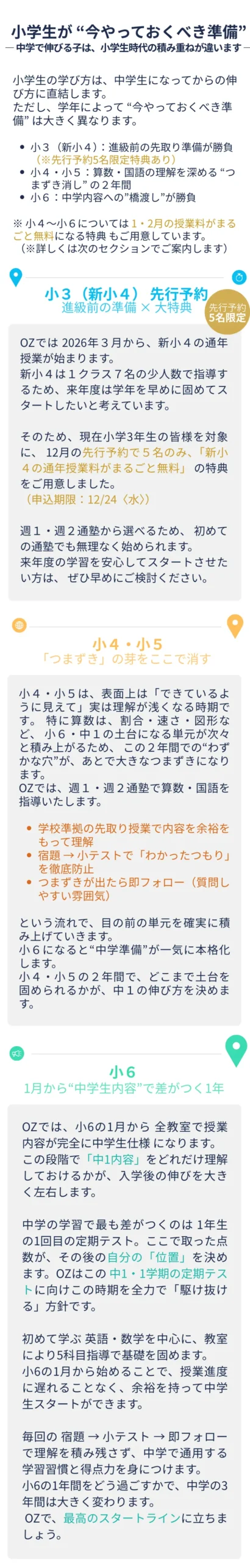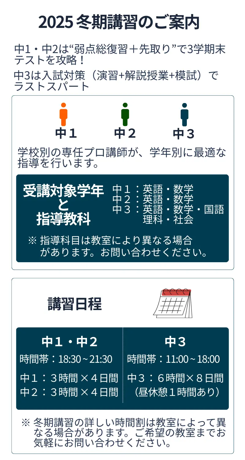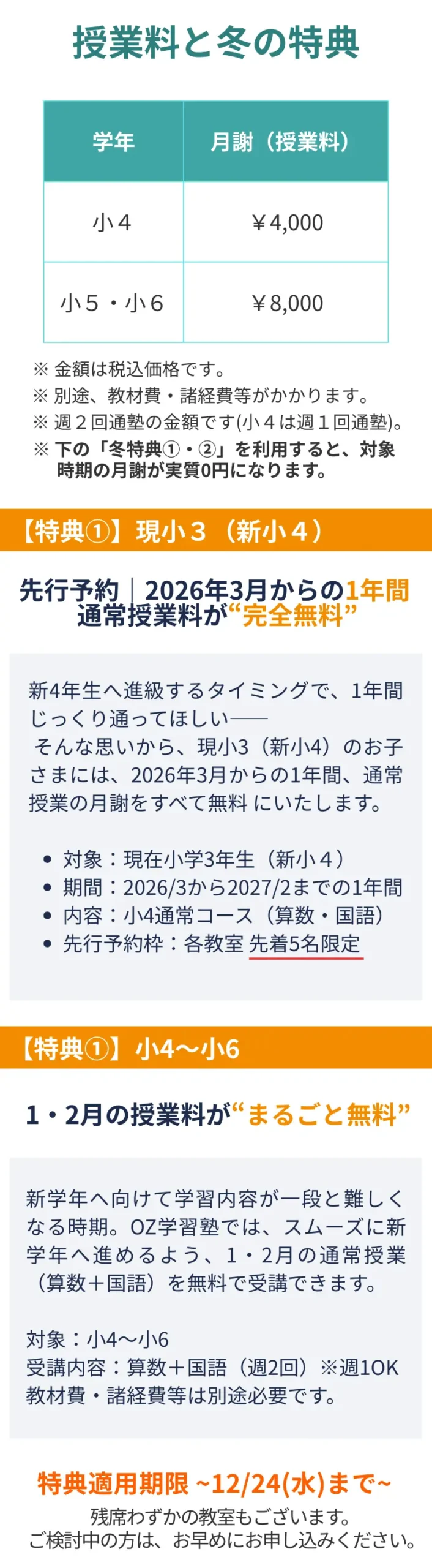 OZ学習塾では、各教室ごとに冬期講習や通常授業のご案内をしております。