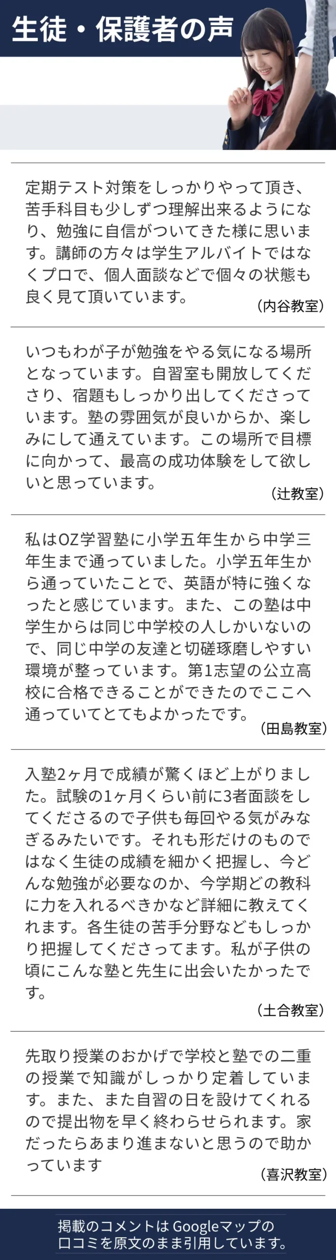 OZ学習塾では、各教室ごとに冬期講習や通常授業のご案内をしております。
