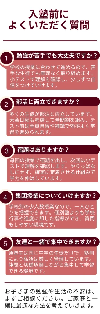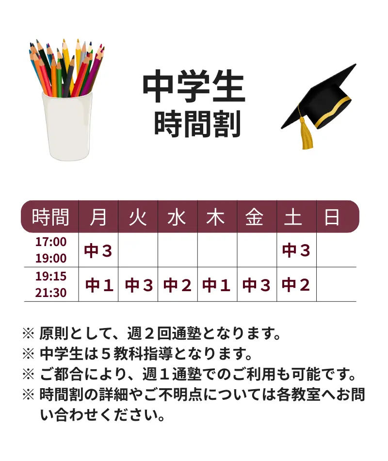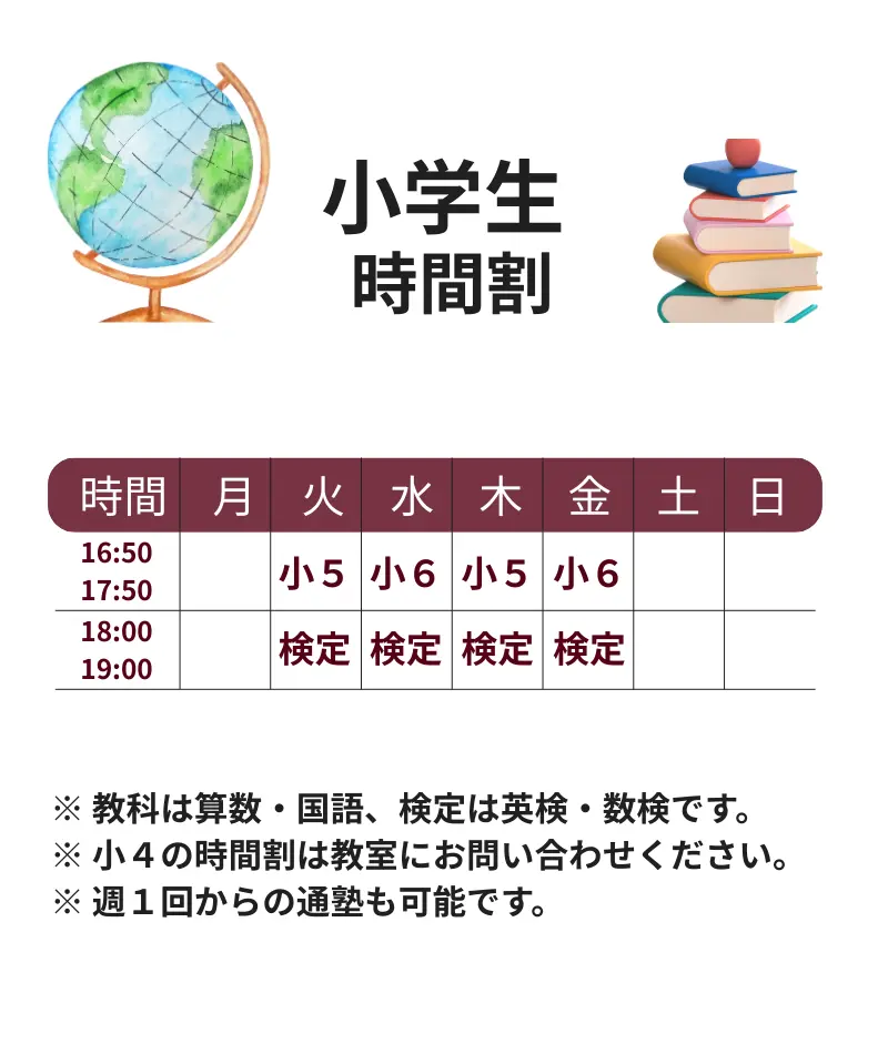 通塾教室は原則として学校ごとに決定しておりますが、ご事情のある場合はお気軽にご相談ください。